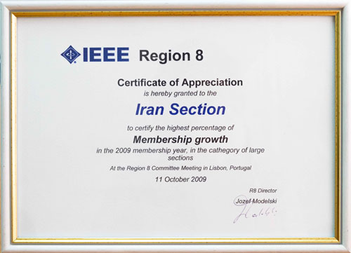 Iran Section honored to win Region 8 Membership Growth Award of 2010 because of the highest percentage of membership growth in the 2010 membership year, in the category of large sections.