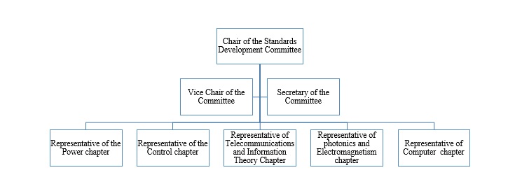 - Due to the scope of activity in the field of production and promotion of IEEE standards, which includes all specialized fields of electrical and computer engineering and even some branches of physics, it is necessary to take advantage of the scientific potential of all specialized departments in IEEE Iran. For this purpose, the structure of the committee is shown in following figure. As shown in this structure, every chapters in IEEE-Iran section including of Power, Control, Telecommunications and Information Theory, Photonics and Electromagnetism and Computer have a representative in the IEEE-Iran Section Standard developments committee. Also this structure can be extended by new further chapters.